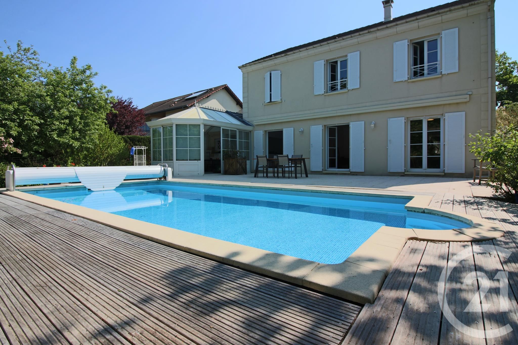 La visite est loin d'être terminée , passez sur l'arrière de la maison et découvrez cet incroyable terrain clos arboré , une terrasse idéalement exposée et une piscine qui saura ravir petits et grands en périodes estivales .